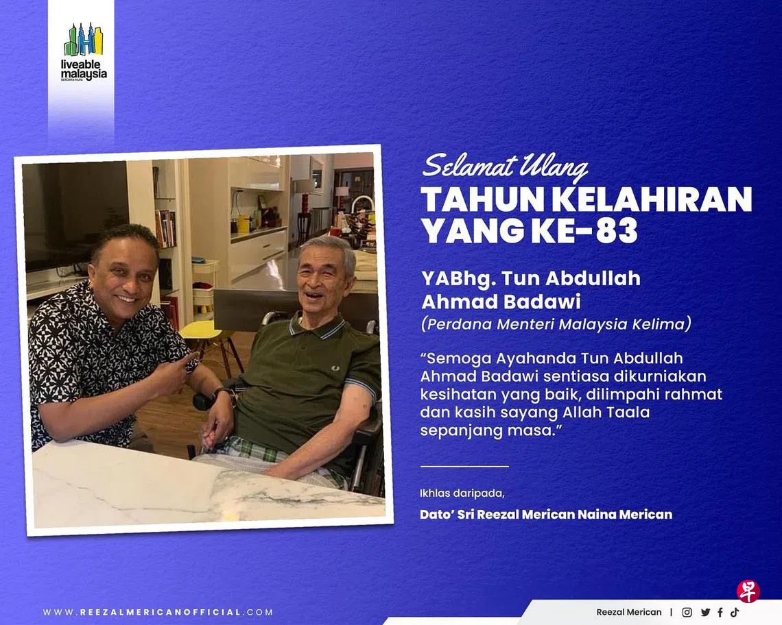 (早报讯)马来西亚前首相阿都拉星期六(11月26日)庆祝83岁生日,尽管患有失智症的他记忆力大不如前,连夫人珍阿都拉也不认得,但一听到他曾八次胜选的国会选区槟州甲抛峇底这个地名时,阿都拉脸上就绽放笑容,显示甲抛峇底对他影响至深。