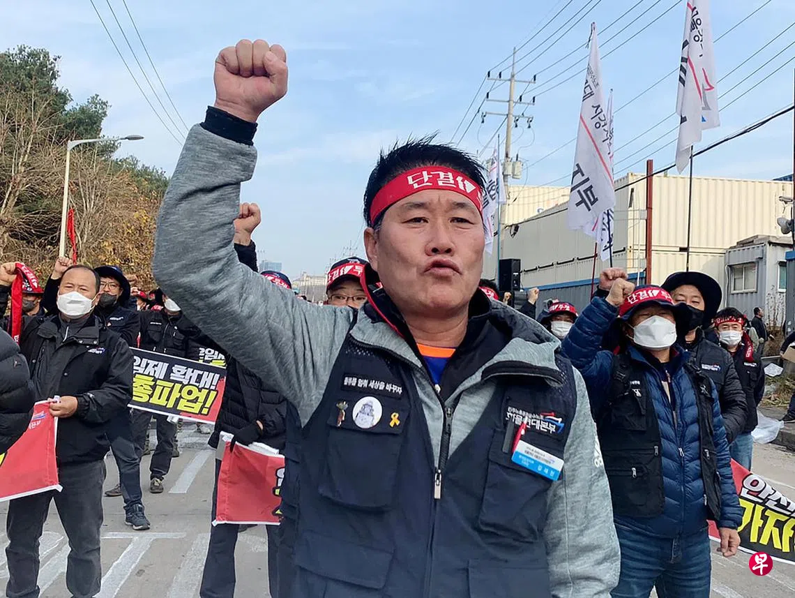 (早报讯)韩国国土交通部星期三(11月30日)消息,韩国政府星期二首次向罢工卡车司机下达开工令后,国土交通部随即前往水泥运输行业现场开展调查,并向350名卡车司机送达开工命令书。