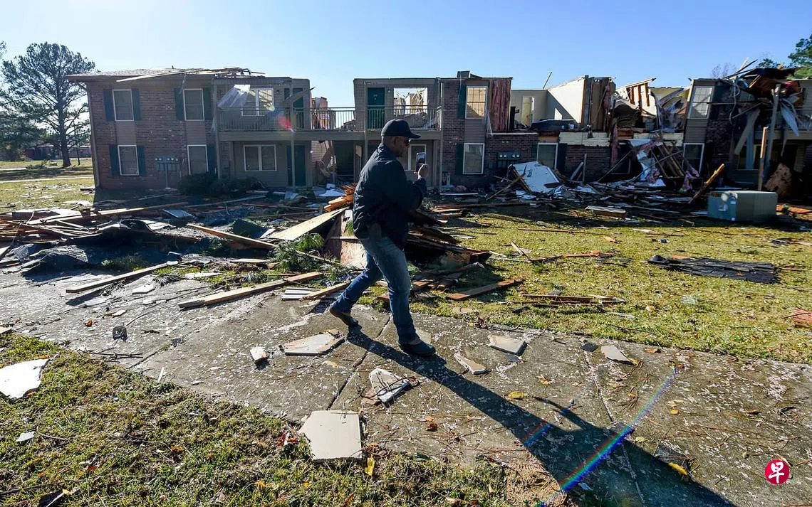(早报讯)据美国媒体报道,星期二(11月29日)晚至星期三(30日)上午,数十场龙卷风袭击美国南部多州,造成至少两人死亡,大量建筑物被严重破坏。