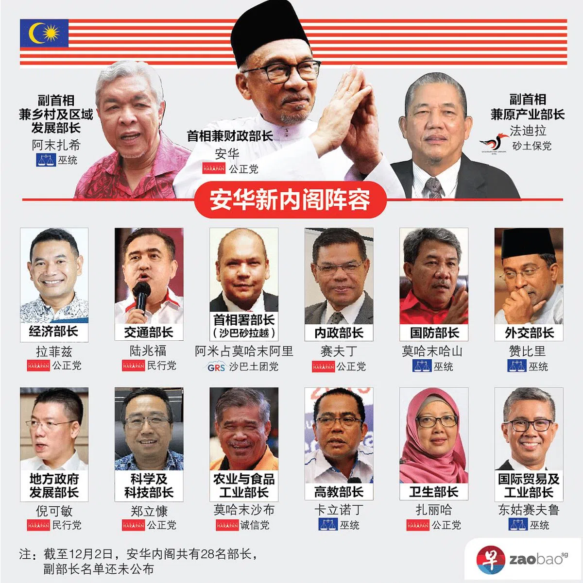 安华还在首相署召开记者会时公布了新内阁阵容,包括他本人在内共28名内阁部长,但安华并未公布副部长的名单。