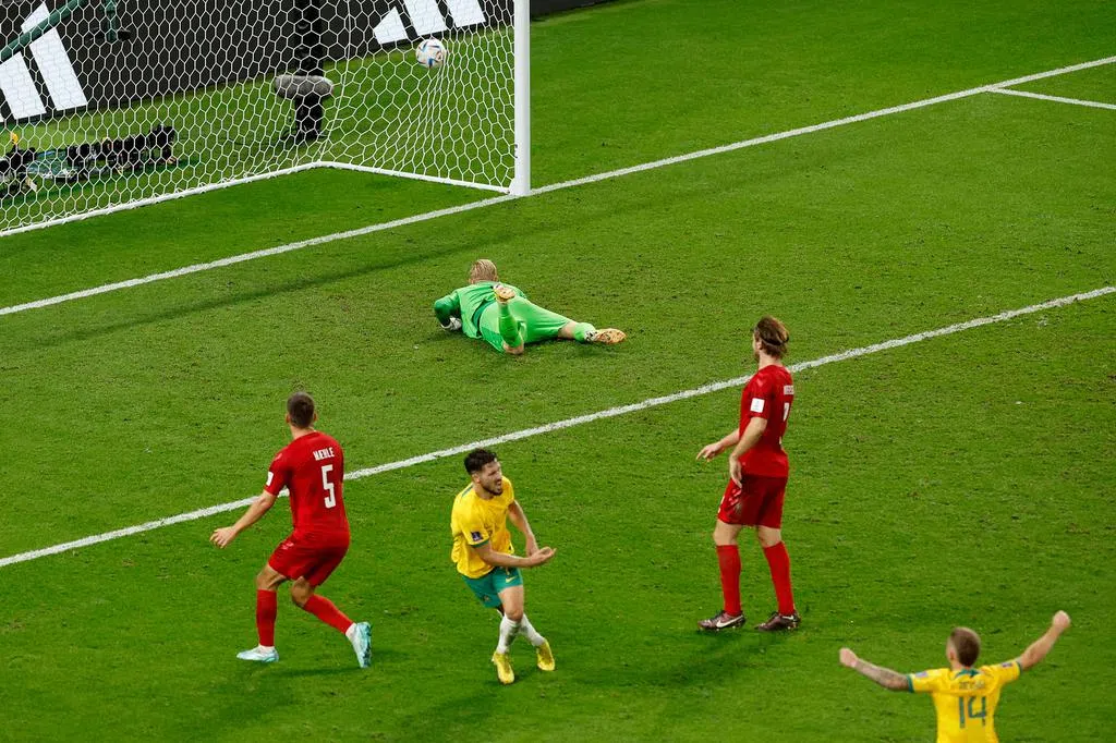 比赛第57分钟,澳大利亚门将出现重大失误,效力于曼市(Man City)的前锋阿尔瓦雷斯破门。