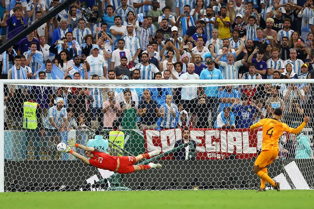 第34分钟,中场费尔南德斯(Fernandez)精妙过顶挑传,22岁锋线小将阿尔瓦雷斯高速插入禁区挑球被克罗地亚门将利瓦科维奇(Livakovic)出击绊倒,主裁判果断指向12码罚球线,梅西主罚命中。这也是梅西本届世界杯的第五个进球,追平他在巴黎圣日耳曼(PSG)的队友姆巴佩(Mbappe),并列射脚榜第一位。
