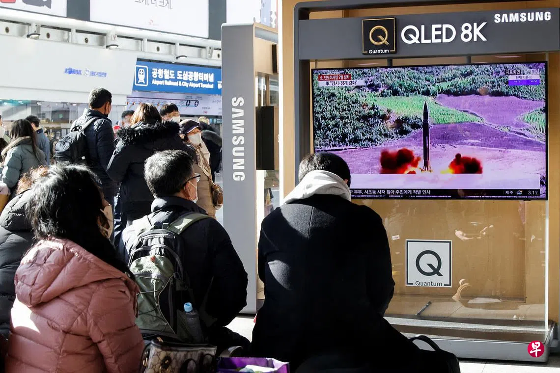 (早报讯)韩国军方指朝鲜星期天(12月18日)向朝鲜半岛东部海域发射两枚弹道导弹。这是朝鲜11月18日发射洲际弹道导弹(ICBM)后,时隔一个月再次发射弹道导弹。