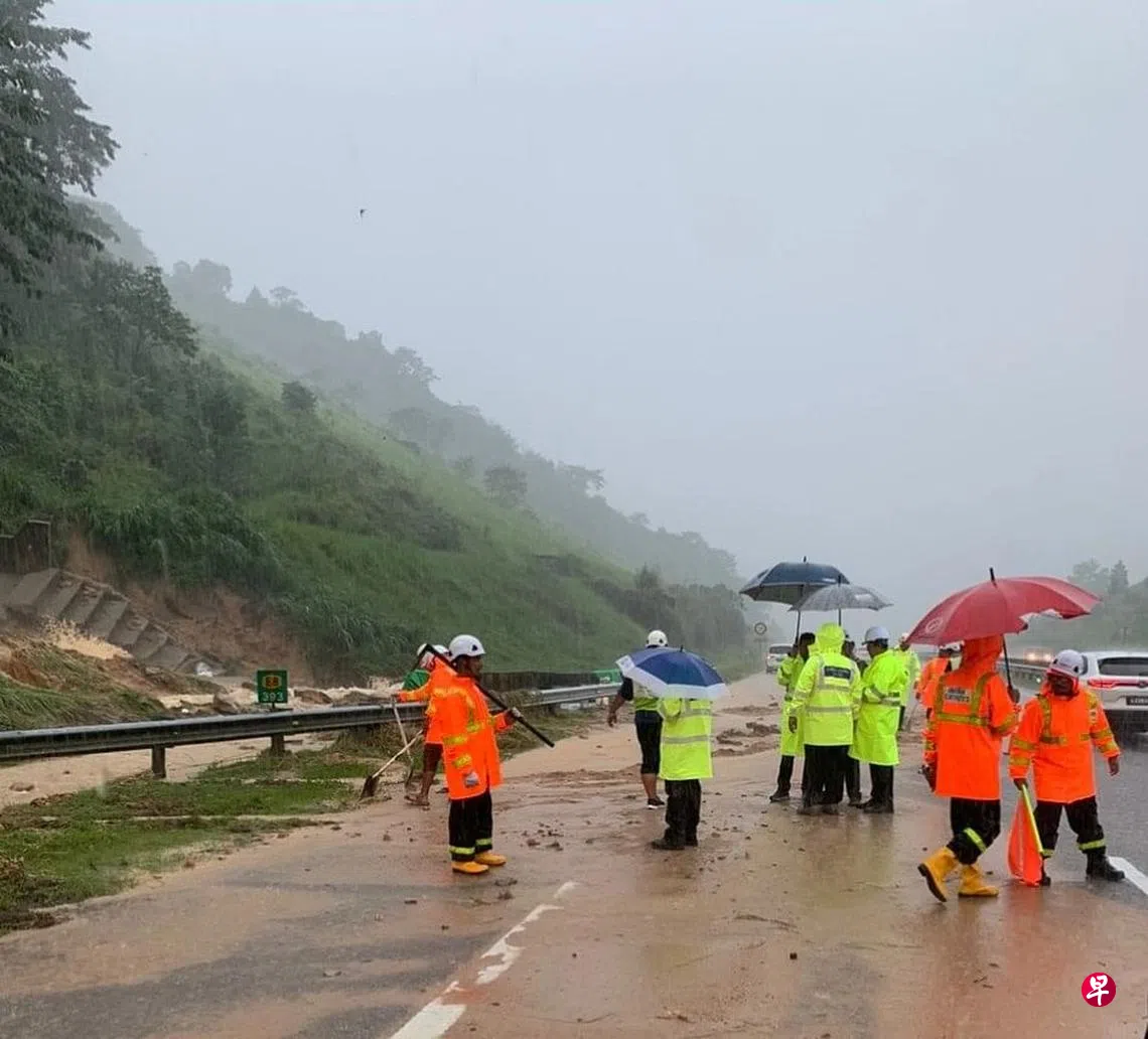 (早报讯)马来西亚云顶半山土崩搜救工作仍在进行之际,位于登嘉楼州的东海岸第二大道星期天(12月18日)出现山泥倾泻,立即引起当局关注。
