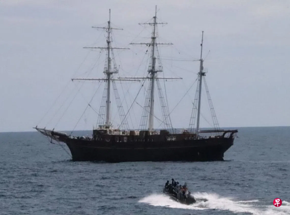 (早报讯)马来西亚海军最先进的护卫舰乐久号(KD LEKIU)成功发现随波逐流而失联数日的帆船玛苏里公主号,并救出帆船上的四名缅甸籍船员。