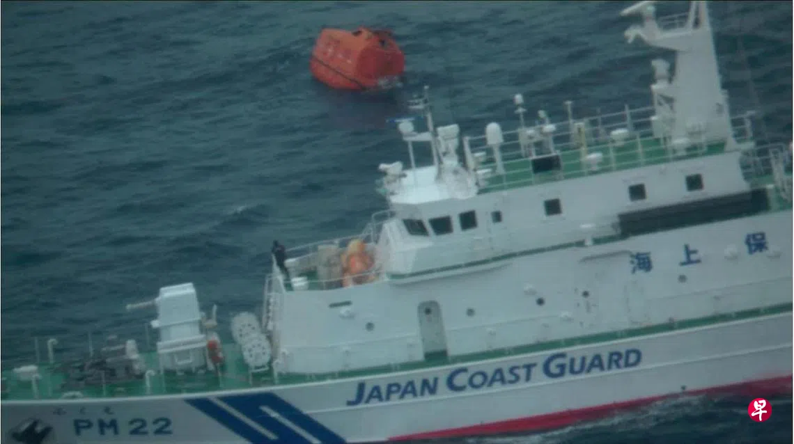 日本海岸警卫队无法证实货船船员都在救生艇上的报道。