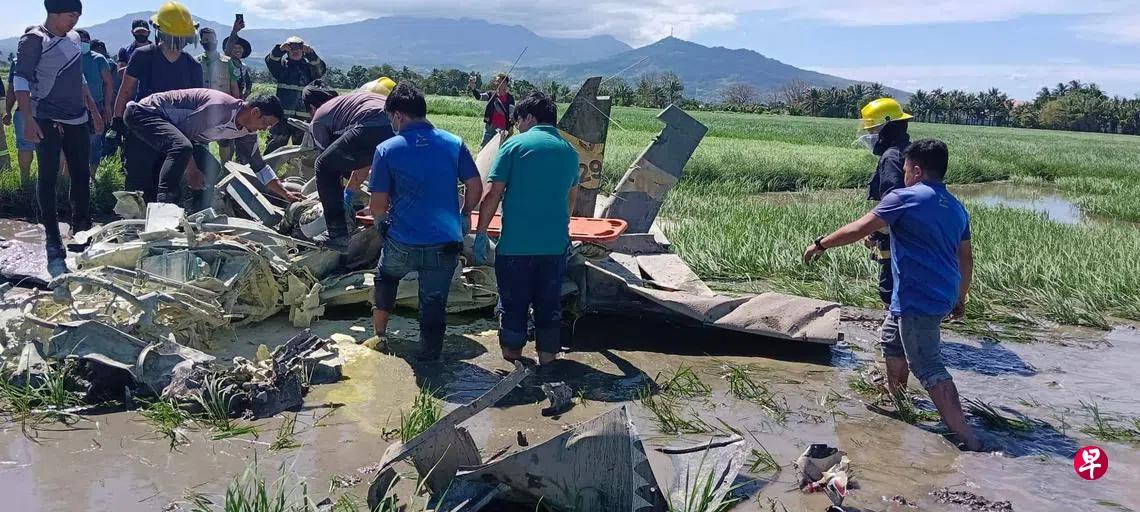 (早报讯)菲律宾一架军机在星期三(1月25日)上午在一处稻田坠毁,造成两名飞行员遇难。
