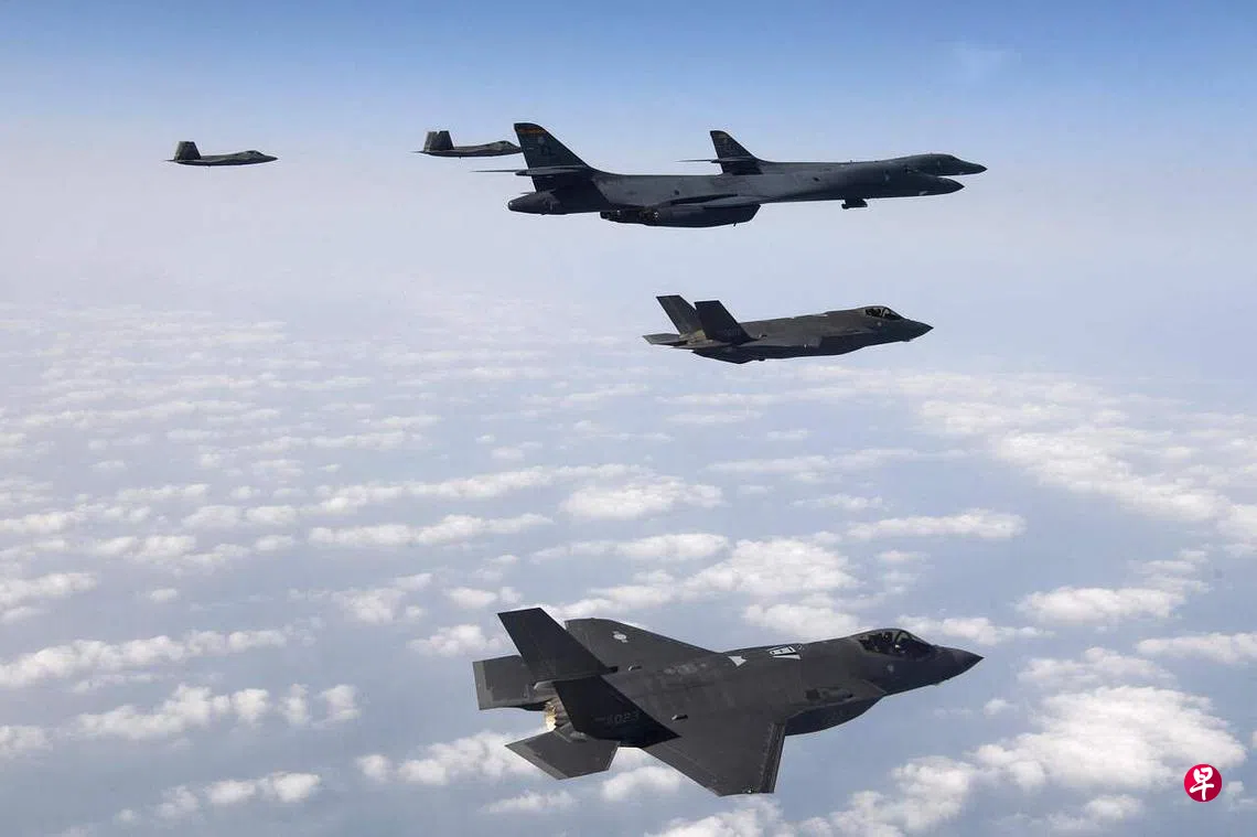 美国和韩国星期三(1日)进行了联合空中演习,韩国国防部说。参与演习的包括B-1B战略轰炸机,以及F-22和F-35B隐形战斗机。