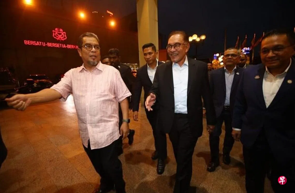 (早报讯)马来西亚首相安华星期二(2月7日)晚间进入巫统总部,准备主持首次“联合政府秘书处会议”。这是安华1998年9月遭巫统开除以来,首次进入巫统总部。