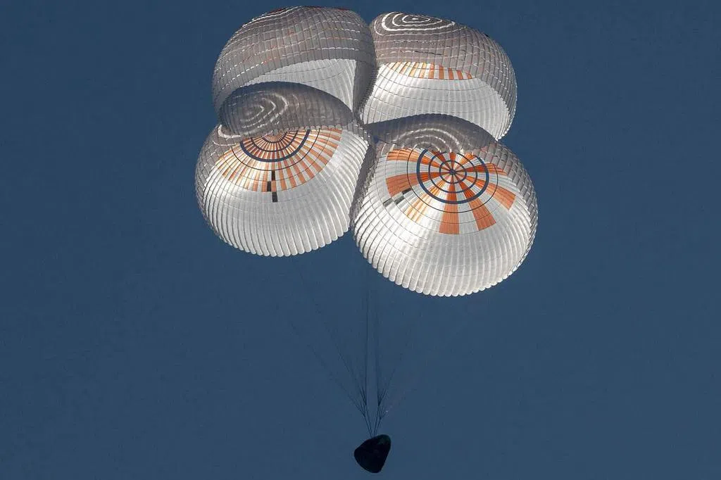 综合外电报道,太空探索技术公司(SpaceX)的“龙”飞船太空舱,于美国东部时间星期六晚上9时(新加坡时间星期天早上9时)降落在美国佛罗里达州坦帕(Tampa)海域。救援团队在降落点待命,并协助宇航员出舱。