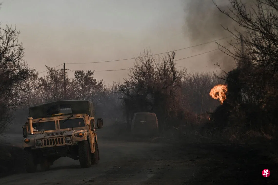 法新社驻前线记者报道称,俄军于星期二下午4时45分左右(新加坡时间晚上10时45分),以每隔五分钟的时间,朝乌东小镇察苏夫雅(Chasiv Yar)南部无人区发射两枚白磷弹。
