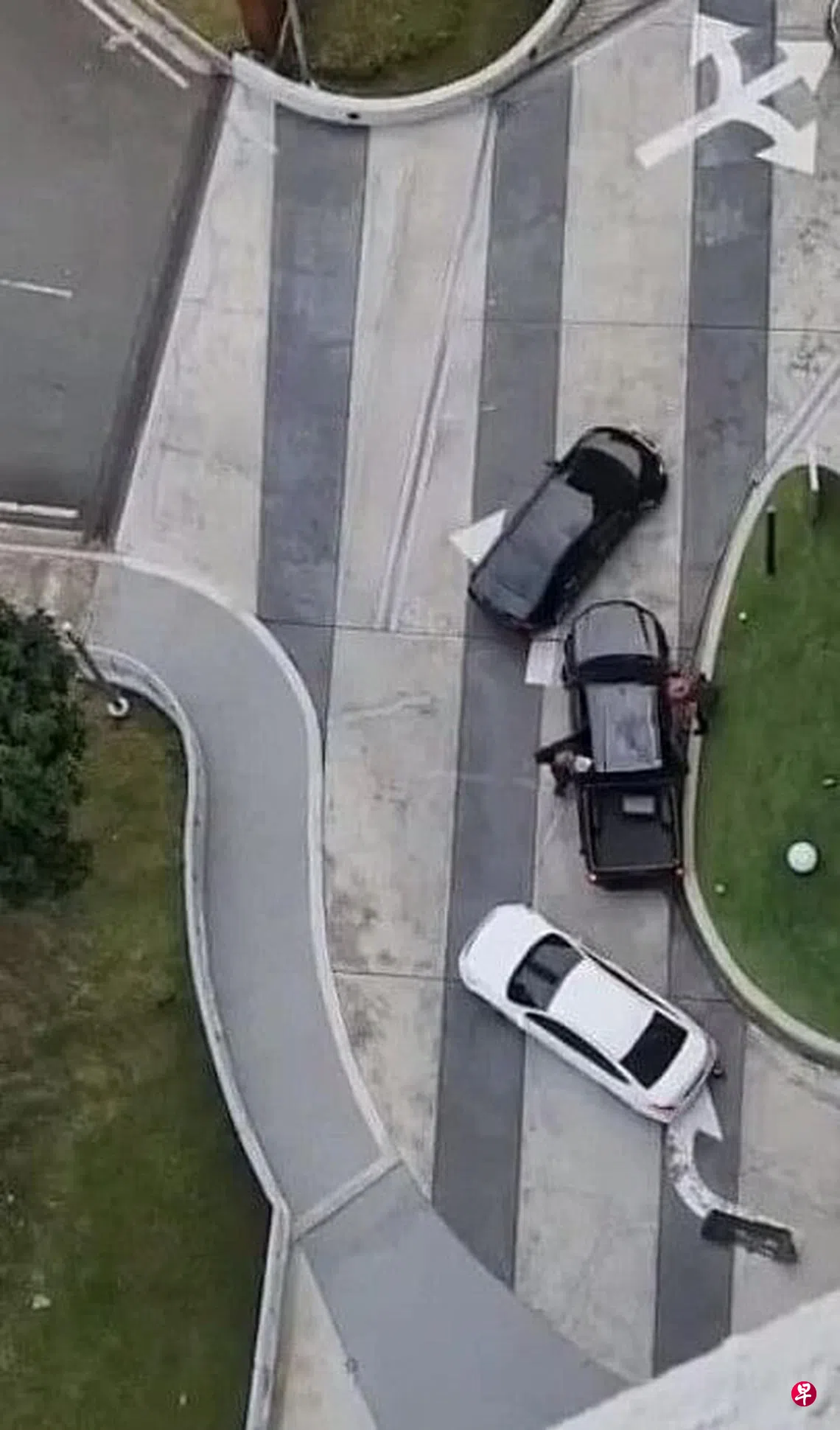 社交媒体流传的视频显示,劫匪分乘两辆汽车抵达公寓后,前后包抄电商的车子。三名戴著草帽的匪徒随即上前打抢,其中一名匪徒持巴冷刀砍伤电商。