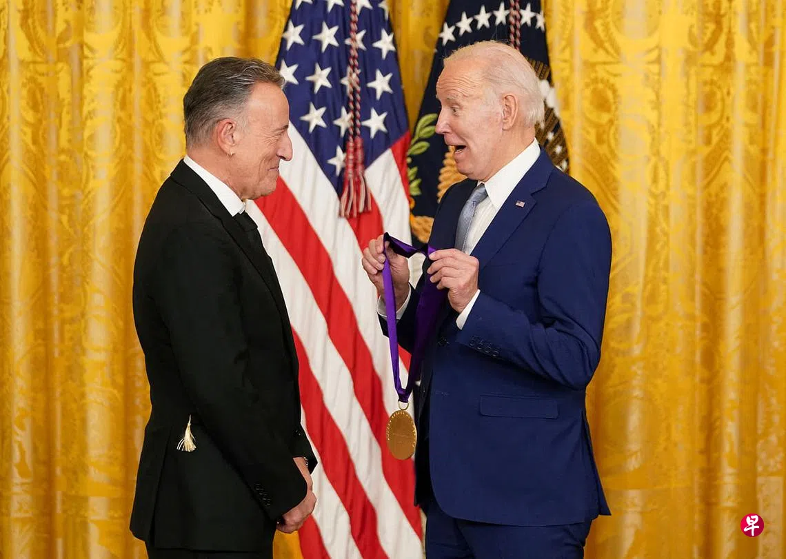 拜登把国家艺术奖章颁给美国摇滚乐传奇歌手布鲁斯·斯普林斯汀(Bruce Springsteen)时,又给出一个暗示。