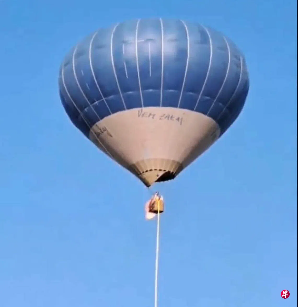 一段发布在社交媒体上的视频显示,这个蓝白色热气球的吊舱被大火吞噬,视频里也可听见一阵阵惊叫声。