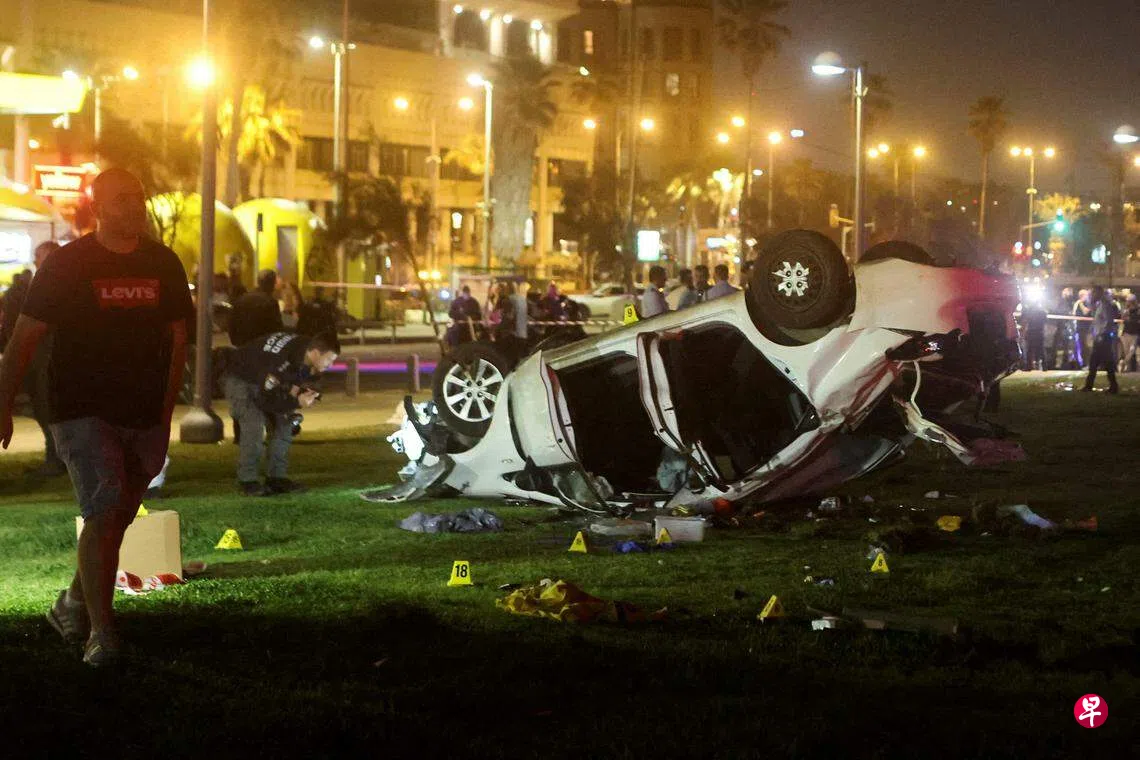 路透社报道,以色列警方发表声明,将这一事件定性为“恐怖袭击”。声明说,一名袭击者当晚驾驶汽车在特拉维夫海滨大道冲撞行人,后被一名以色列警察开枪打死。