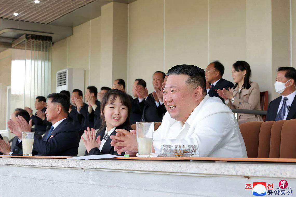 4月15日是朝鲜已故最高领导人金日成冥诞(又称太阳节),朝鲜领导人金正恩带着女儿金珠爱和胞妹、劳动党中央委员会副部长金与正,一起观看体育比赛。