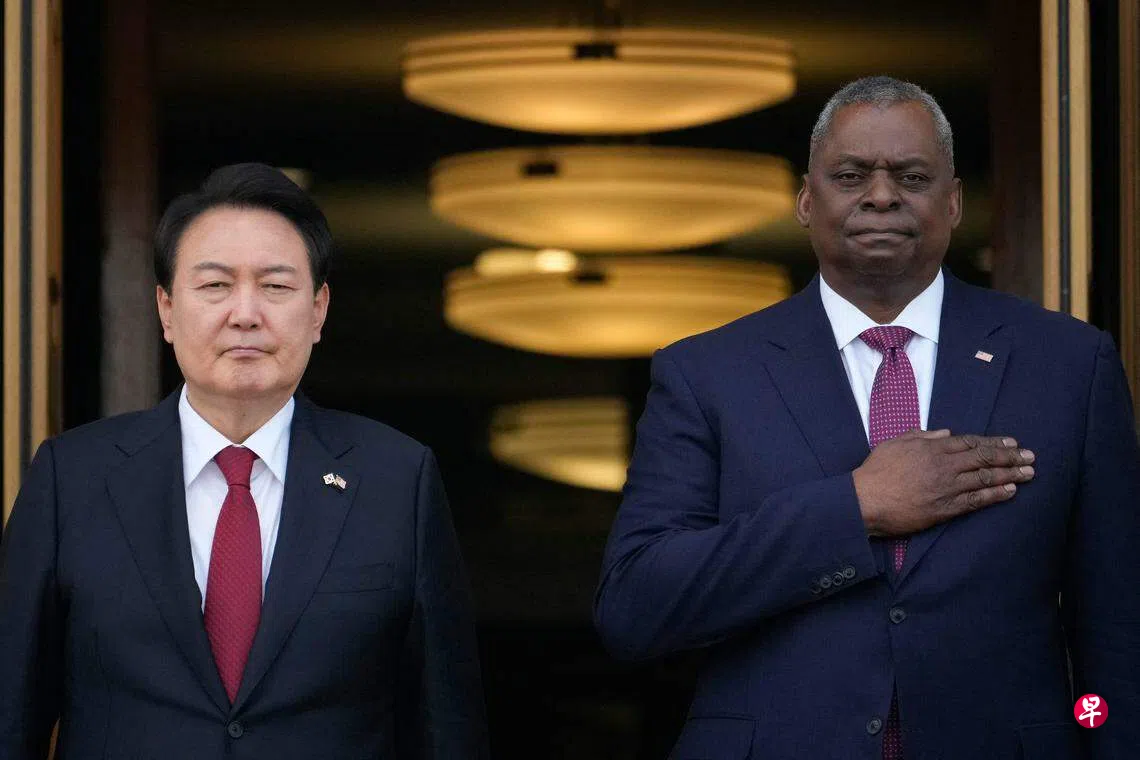 韩美首脑星期三发表有关加强对朝延伸威慑的《华盛顿宣言》,尹锡悦此行或旨在强调稳如泰山的韩美联合防卫态势。