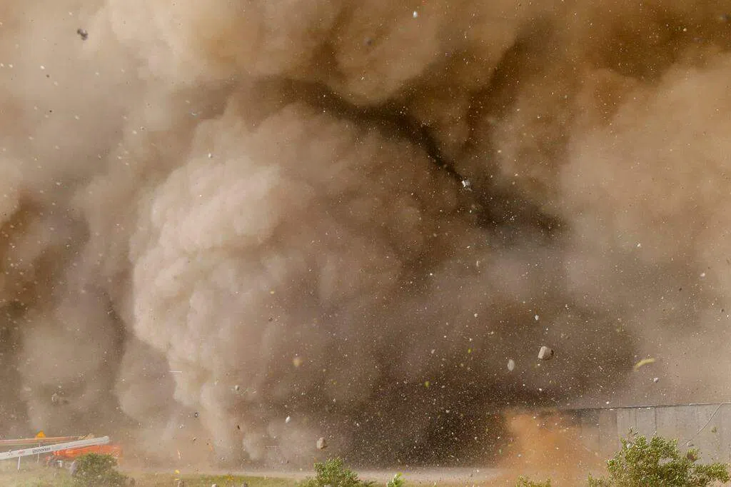 另一个意外是,火箭下方的混泥土在发射时被引擎动力震碎,由此引发一股“岩石龙卷风”,碎石砸向数百英亩外的土地,并产生巨大尘云(dust cloud)。