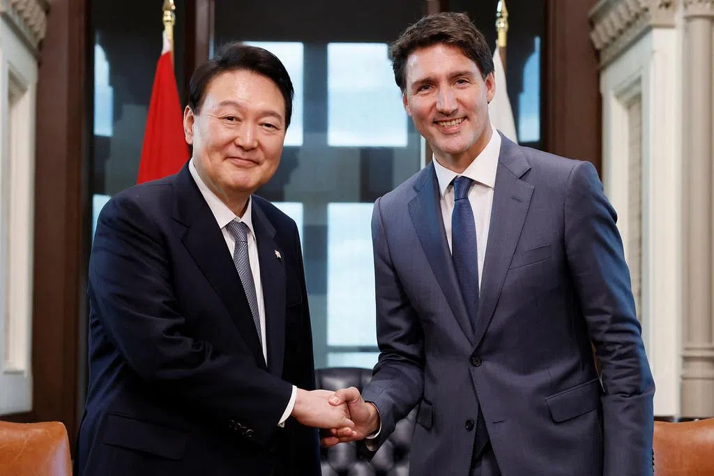 韩国总统尹锡悦星期三(5月17日)在首尔龙山总统府会见加拿大总理特鲁多,双方同意继续在关键经济安全领域保持合作。