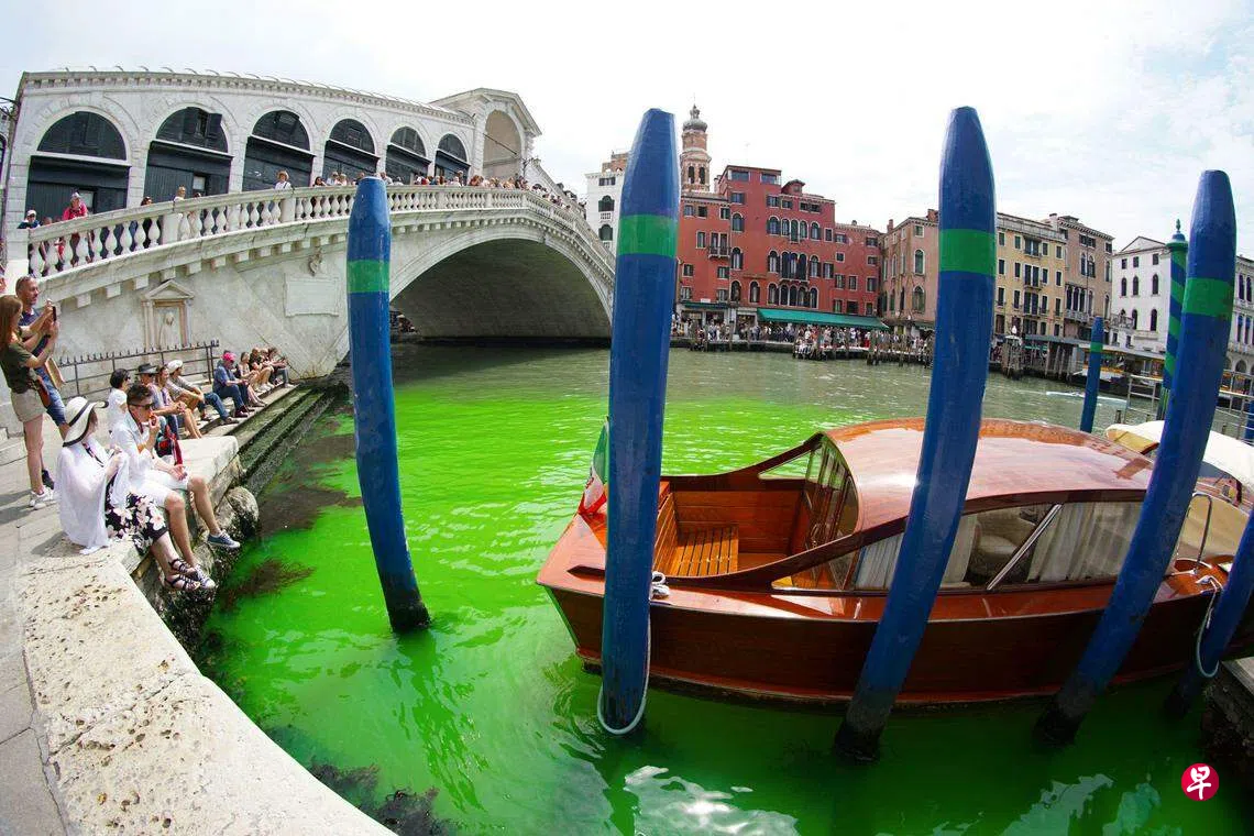 近日,意大利威尼斯大运河(Grand Canal)部分河段的河水变成诡异的“荧光绿”,当局对此展开调查后发现,当地为测试废水系统运作情况而往河中倒入无毒性的荧光素,在阳光照射下呈现出这种奇异色彩。
