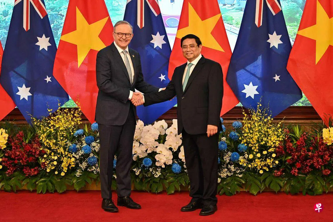 彭博社的报道称,双方签署的合作协议包括建立部长级贸易会谈,以及在洗钱和恐怖主义融资方面进行情报共享。阿尔巴尼斯还宣布一项价值1亿零500万澳元(约9358万新元)的援助计划,用于支持越南能源从煤炭过渡转型。
