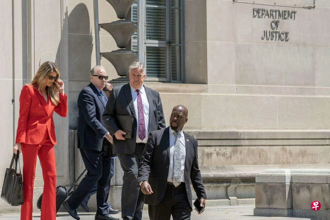 《纽约时报》指特朗普三名律师——特鲁斯蒂、罗利和哈利根——星期一在司法部待了将近两个小时,三人离开时均拒绝对记者发言。