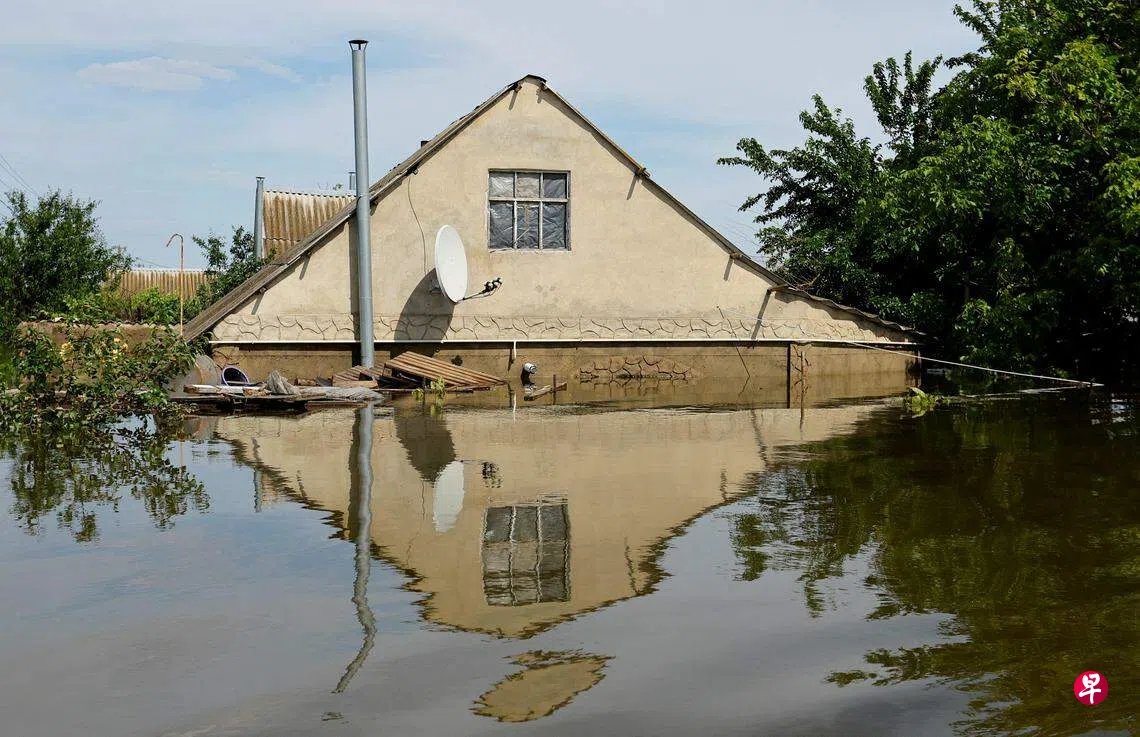 位于俄罗斯占领区新卡霍夫卡(Nova Kakhovka )的水坝星期二(6月6日)遭炸后,洪水淹过数十个村庄和附近一座城市的部分地区。