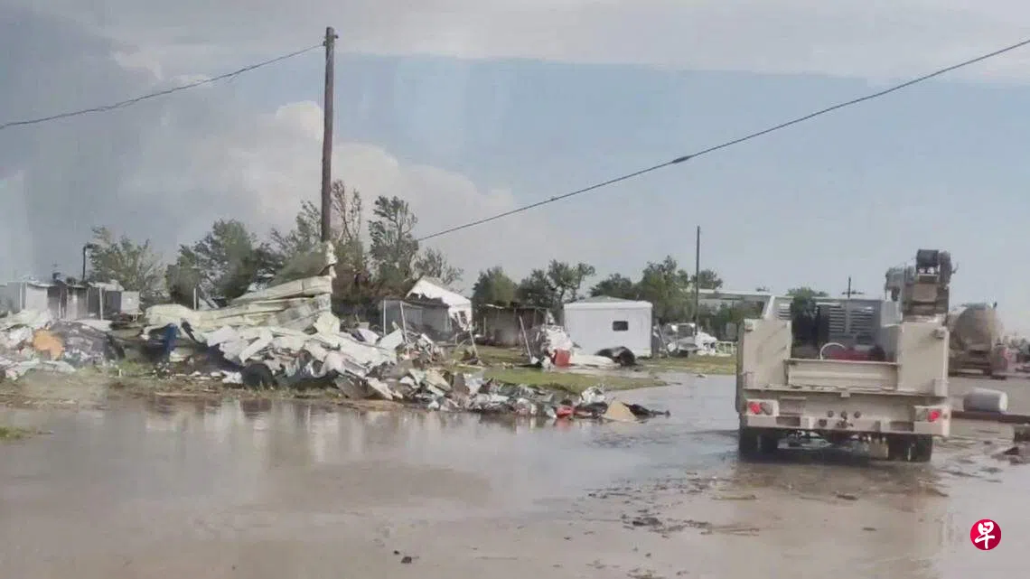综合外电报道,龙卷风星期四(6月15日)晚上侵袭约8000人口的佩里顿(Perryton),无人机视频显示,包括移动板房在内的约200座房屋被毁,树木被连根拔起,车辆也被掀翻。