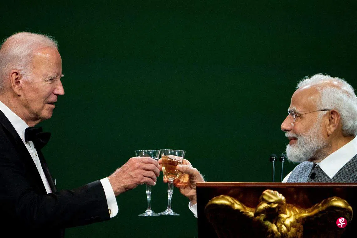 拜登星期四在白宫为莫迪举行盛大的欢迎仪式,两人结束闭门会谈后,在联合新闻发布会上说,美印两国是“世界上最亲密伙伴之一”。