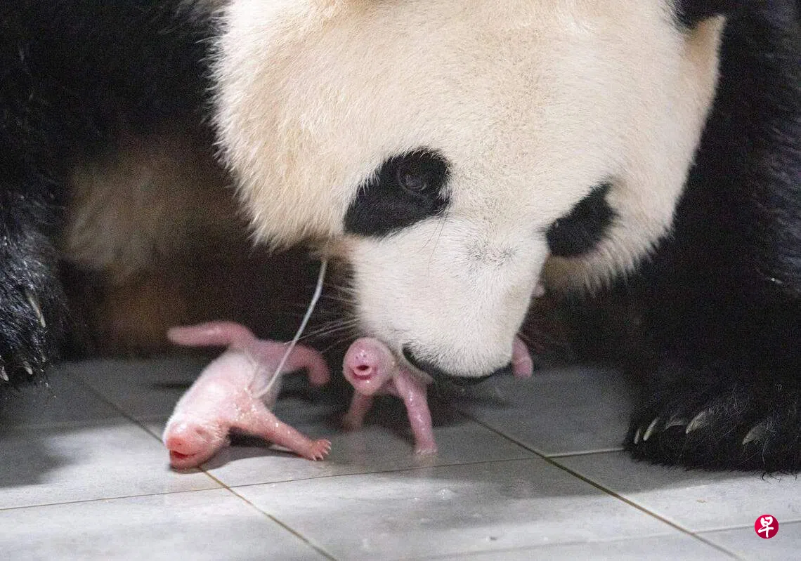 旅韩大熊猫“爱宝”上周成功诞下一对双胞胎,成为首对在韩国出生的熊猫双胞胎。