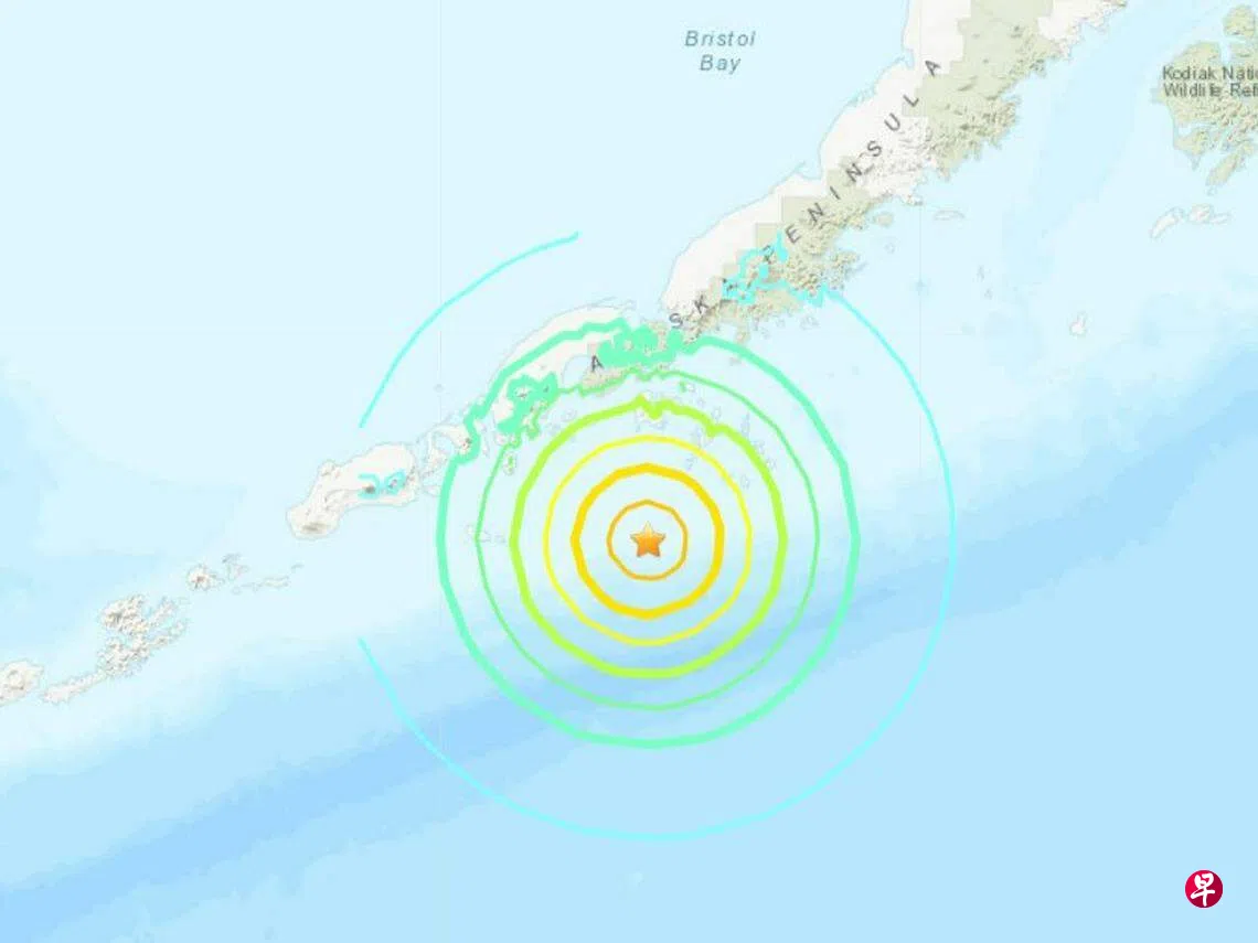 综合路透社和法新社报道,USGS补充说,此次地震于当地时间星期六(7月15日)晚上10时48分(新加坡时间16日下午2时48分),在阿拉斯加东部小镇沙角(Sand Point)西南约89公里处发生。