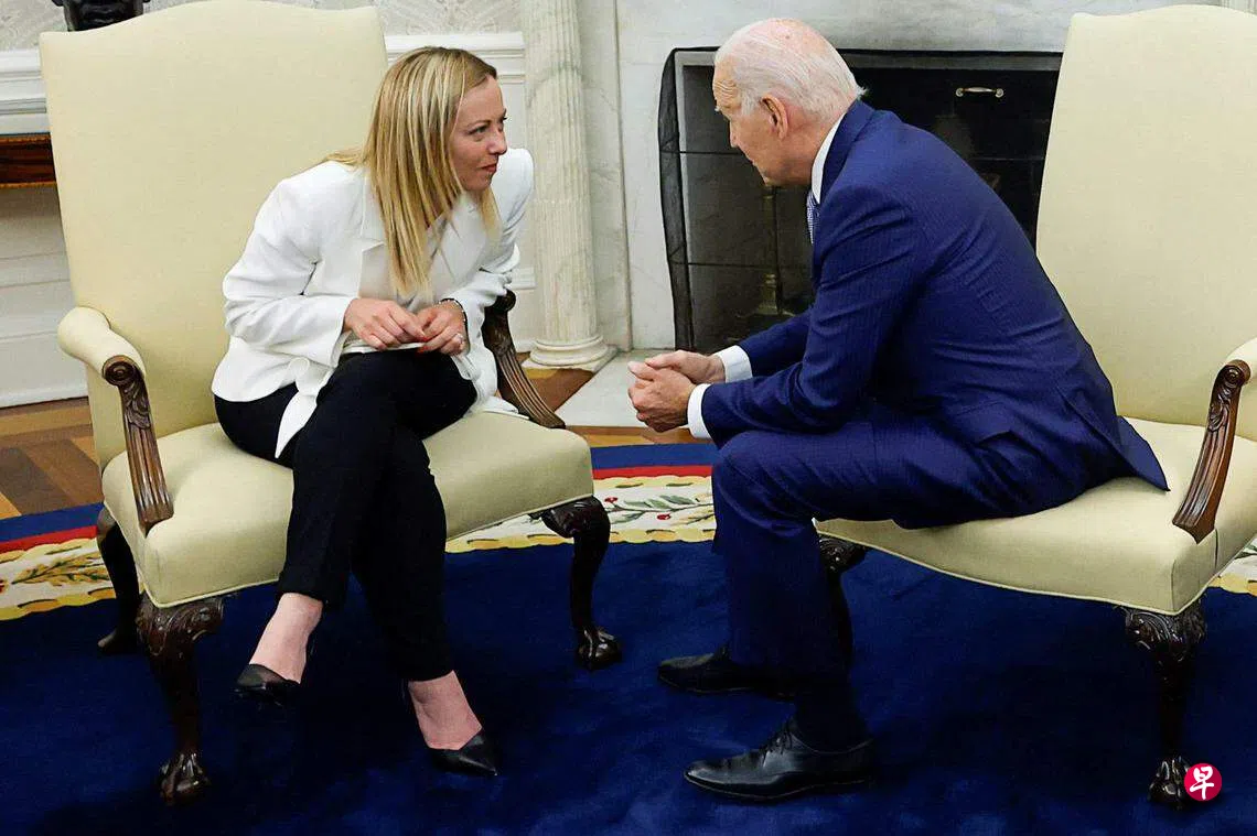 拜登说,他和梅洛尼将讨论“深化经济联系”,以及对发展中国家的支持,他也对梅洛尼大力支持西方帮助乌克兰抵御俄罗斯入侵的努力,表示赞赏。