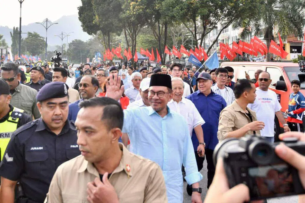 慕尤丁、阿兹敏及其他国盟候选人,比安华和希望联盟团队先到达提名中心,之后慕尤丁与三名候选人进入提名中心。