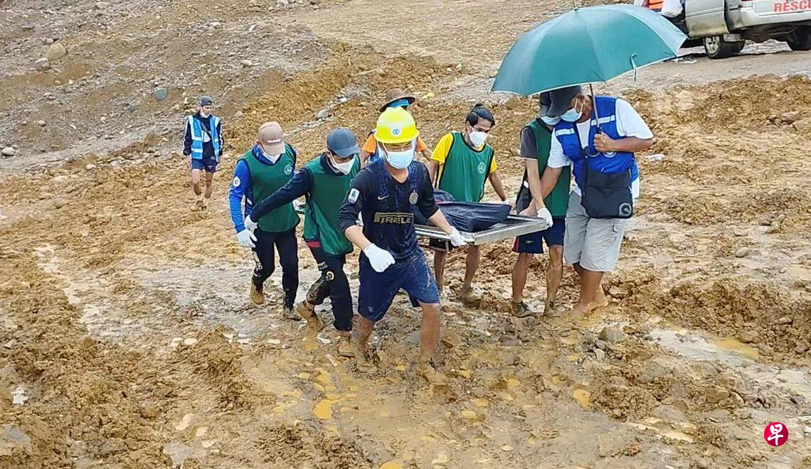 救援人员必须在泥土中挖掘才能找到遗体,有些死者的遗体漂浮在矿湖水面。