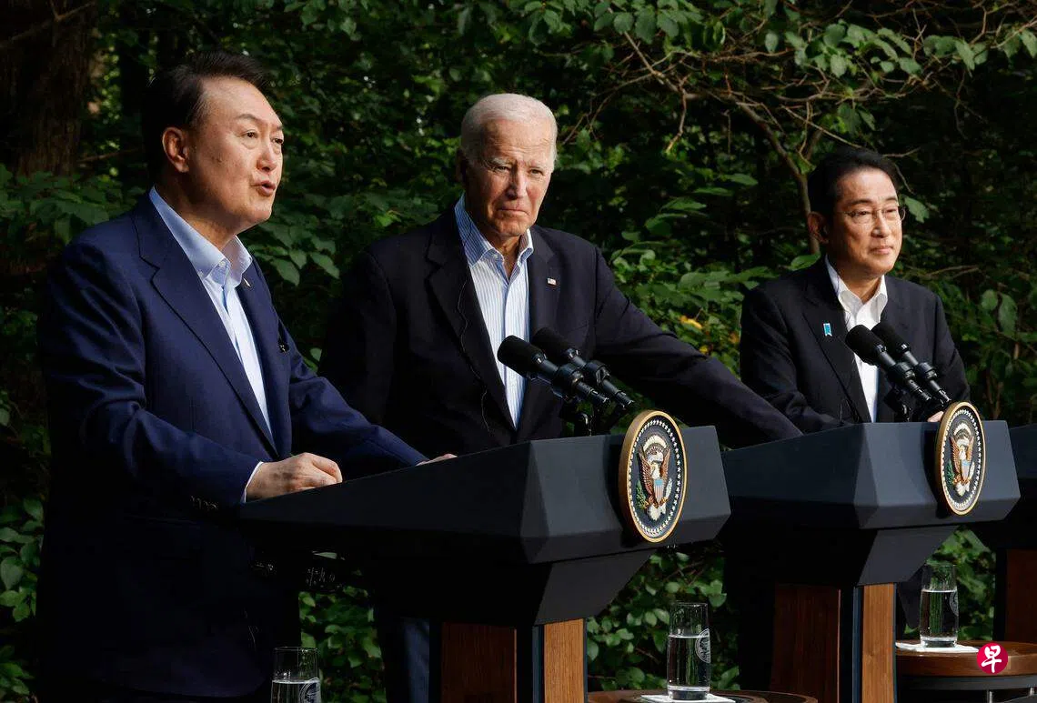 韩国总统尹锡悦说,随着朝鲜挑衅和威胁日益增加,韩国、美国和日本之间的三边合作结构将更加稳固。