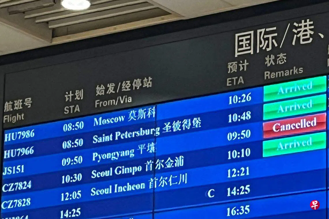 法新社报道,高丽航空JS151航班原定于星期一上午9时50分到达中国北京首都国际机场。记者当天聚集在机场等候,但在原定到达时间近两个小时后,候机楼的航班告示牌意外显示JS151已被取消。