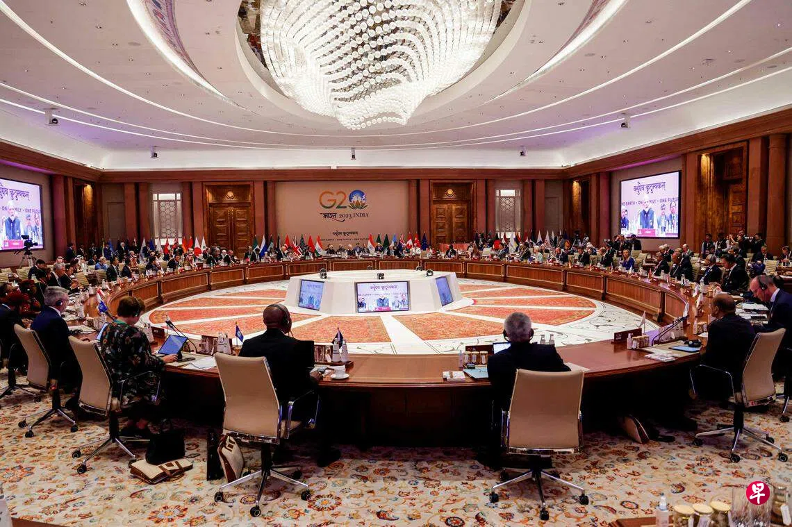 与会各国于星期六(9月9日)通过了一份领导人联合声明,但文中并未直接点明俄乌战争问题,而是强调“所有国家”应“避免以武力相威胁或使用武力来谋求获取领土,侵犯任何国家的领土完整和主权或政治独立”。这与去年G20峇厘岛峰会达成的联合声明中明确直白的“战争”措辞有所不同。