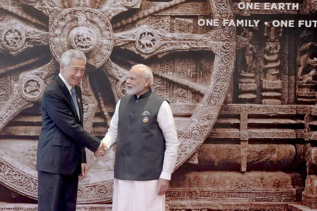 印度总理莫迪星期天(9月10日)早上在位于亚穆纳河岸边的甘地陵墓(Raj Ghat),用卡迪布(khadi)制成的披肩欢迎G20领导人和其他受邀嘉宾,包括我国总理李显龙。卡迪布是甘地在印度独立运动中推广的一种手织棉布。