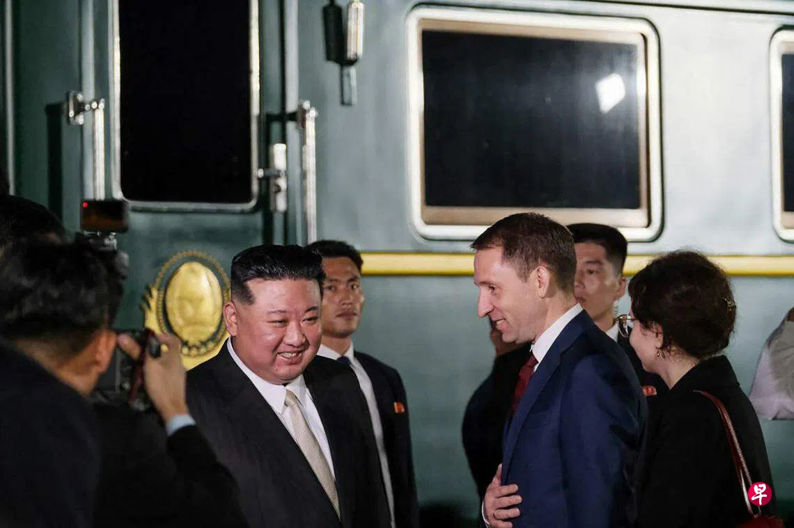 法新社报道,俄罗斯自然资源和环境部星期二(9月12日)拍摄并发布的图片显示,朝鲜领导人金正恩在滨海边疆区哈桑火车站走出火车车厢,展开对俄罗斯的正式访问。