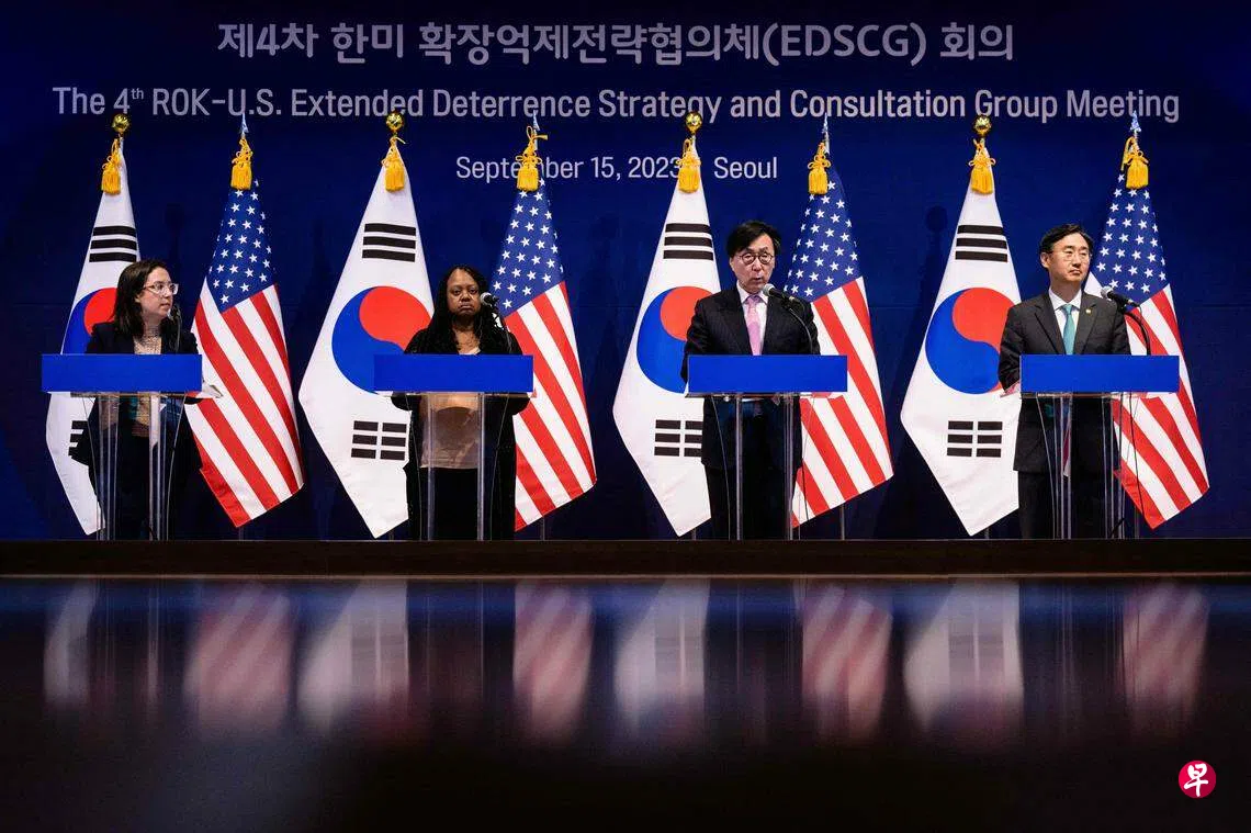 韩联社报道,美韩两国星期五(9月15日)在首尔外交部大楼举行第四次“延伸威慑战略协商”机制(EDSCG)会议。韩国外交部第一次官(副部长)张虎镇在会后举行的记者会上说,俄朝军事合作严重违背联合国安理会的决议。