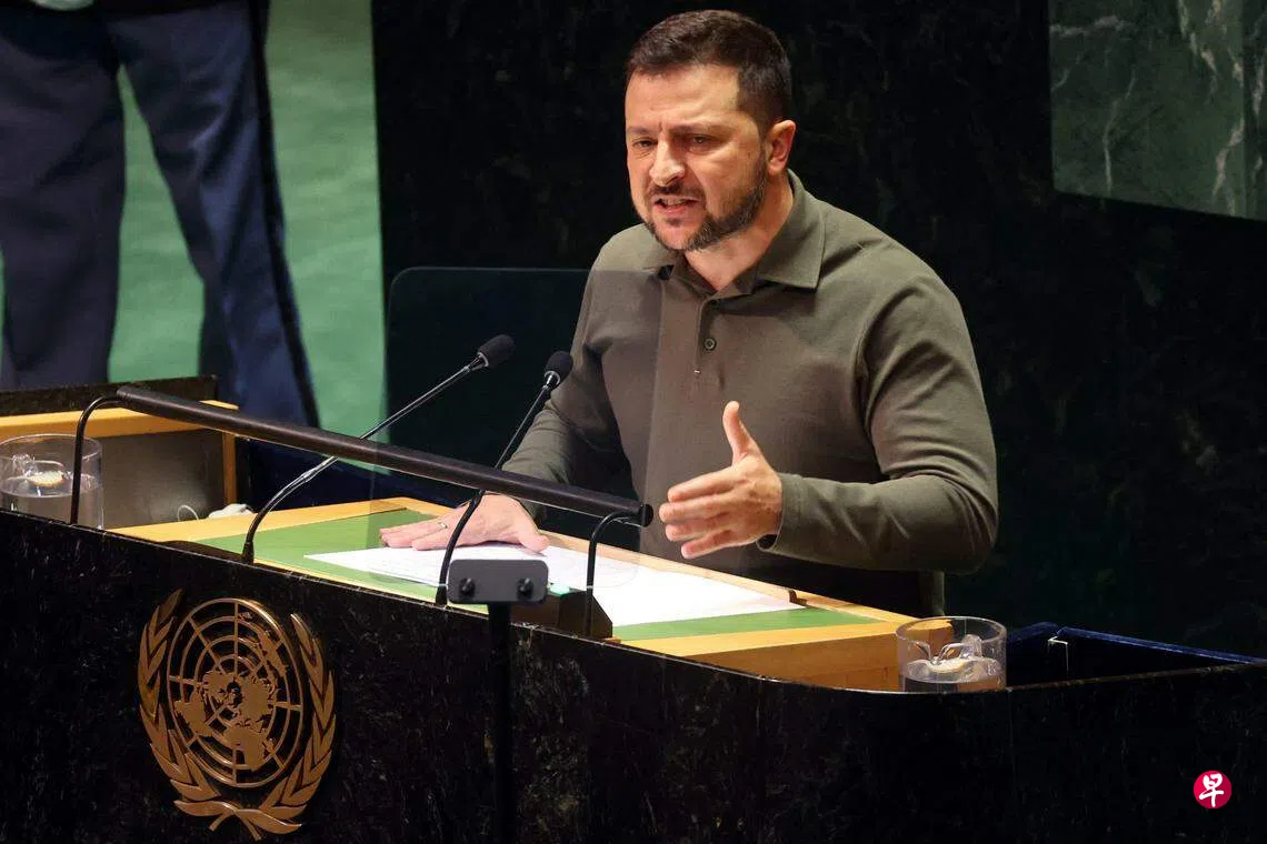 这是自俄罗斯去年2月入侵乌克兰以来,泽连斯基首次亲赴美国纽约出席联合国大会发言。