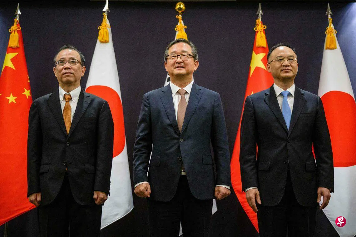韩联社报道,韩国外交部部长助理郑炳元、日本外交部外务审议官船越健裕与中国外交部部长助理农融星期二在首尔中区的乐天酒店举行三国高官会议。据预测,三方在会上重申各自对重启韩中日领导人会谈的意志,并就具体磋商日程进行协调。