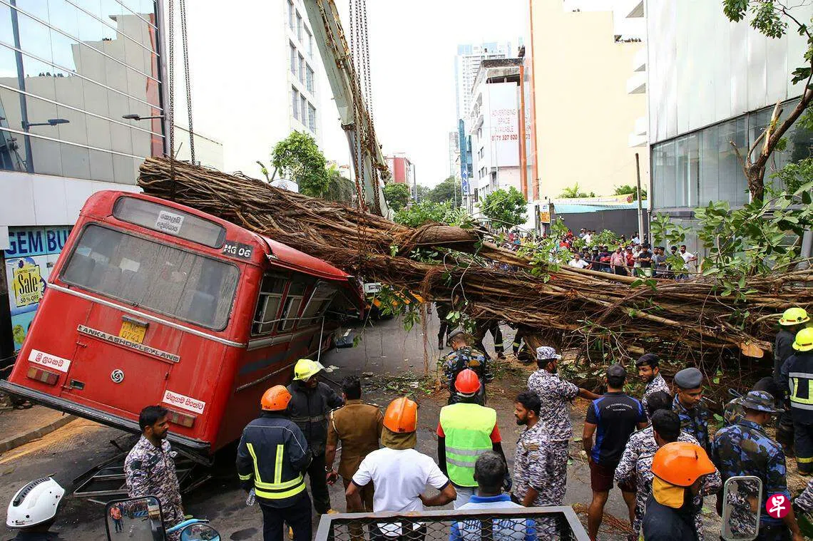 斯里兰卡一辆国营公司的公共巴士在首都科伦坡市中心被倒下的大树砸中,五名乘客死亡。