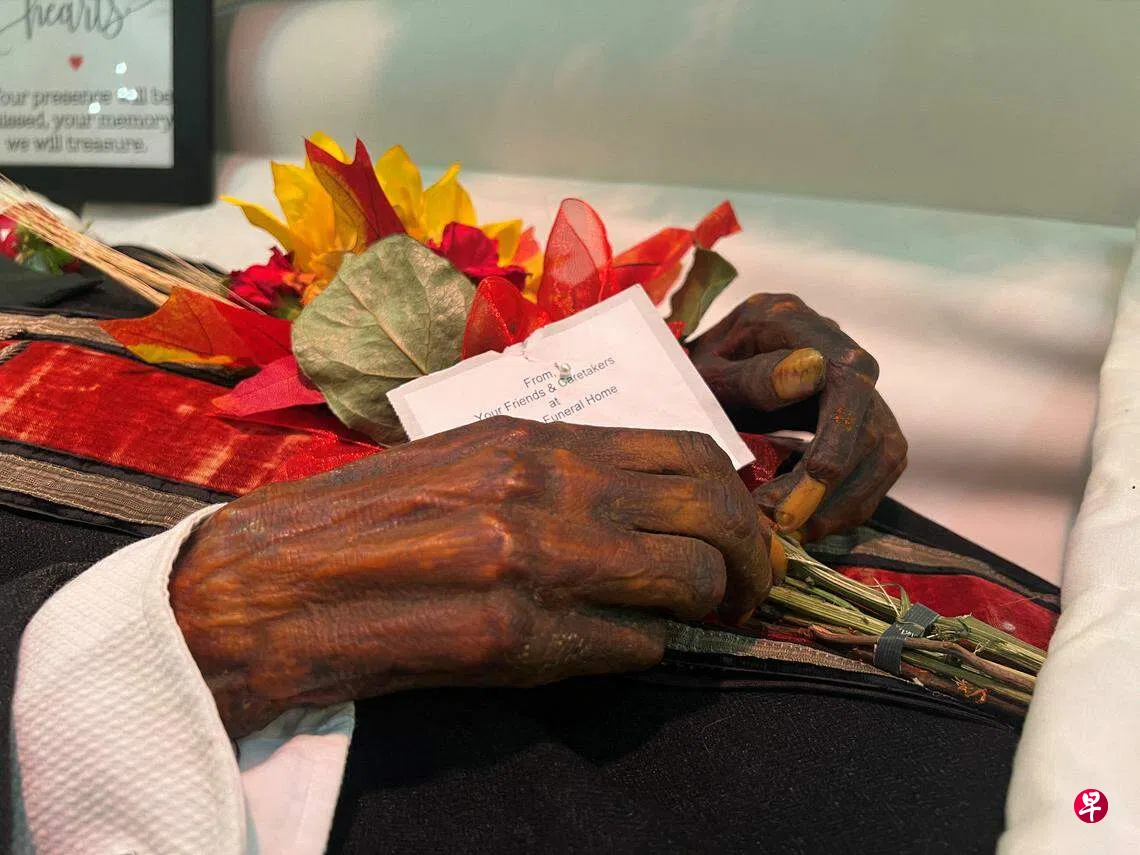 美国宾夕法尼亚州一家殡仪馆为一名已成为皮革木乃伊的男子举行葬礼,而这也是过去128年里,这名男子第一次得以用真名下葬。