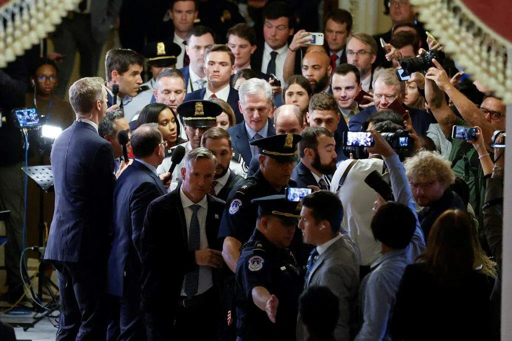 去年美国中期选举后,共和党人在众议院占据221个席位,仅比民主党多出九席。一旦有几名共和党人“倒戈”,党内议长候选人就无法获得足够票数当选。今年1月,经过党内激烈争论达成利益交换,麦卡锡经历15轮投票才当选众议院议长。