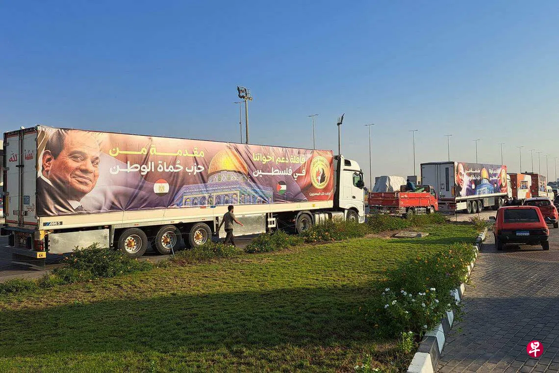 一名安全消息人士和埃及红新月会官员告诉法新社,从埃及运载人道主义救援物资的卡车,星期六(10月21日)上午开始进入加沙地带。