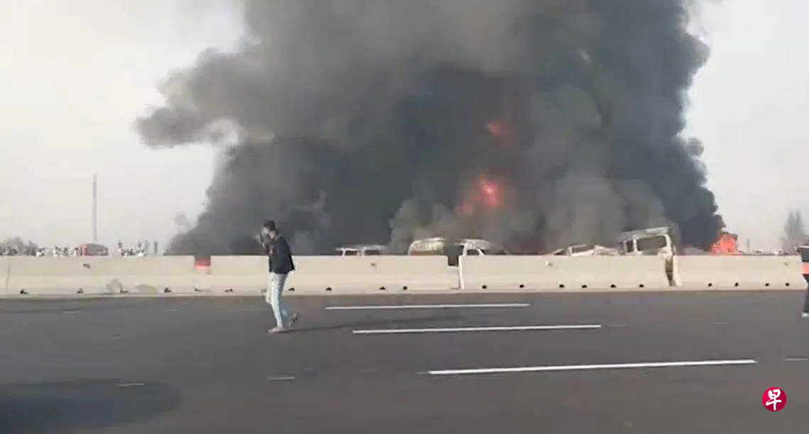 当地媒体报道,事发当时一辆汽车因为漏油导致连环撞,随后引发多车起火,造成上述人员伤亡。伤者已送入附近医院就医。