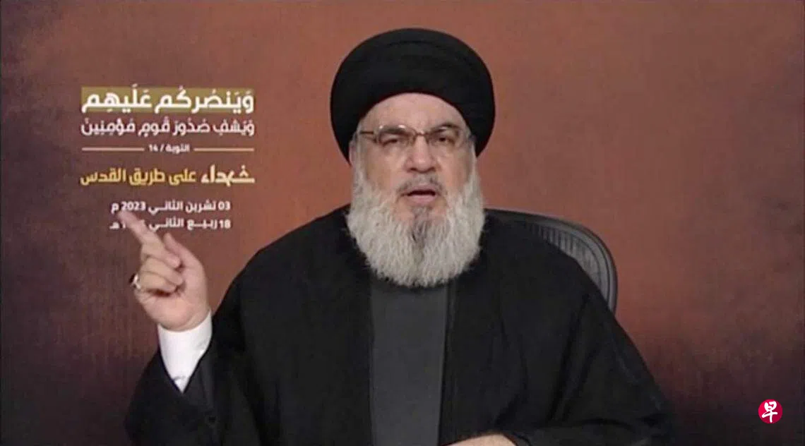 综合法新社和路透社报道,伊朗支持的黎巴嫩真主党领导人纳斯鲁拉(Sayyed Hassan Nasrallah)星期五(11月3日)发视频警告美国,如果以色列不停止对加沙地带的袭击,以哈冲突可能会扩大为地区战争,并暗示他的准军事组织已准备好在地中海对抗美国军舰。