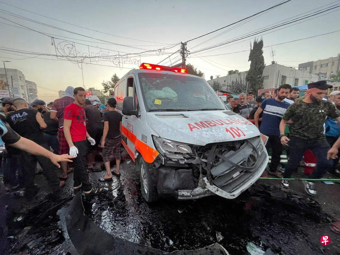 巴勒斯坦加沙地带卫生部门星期五(11月3日)晚上说,加沙城希法医院门口的医疗车队当天遭以色列军队空袭,造成至少15人死亡、60人受伤。