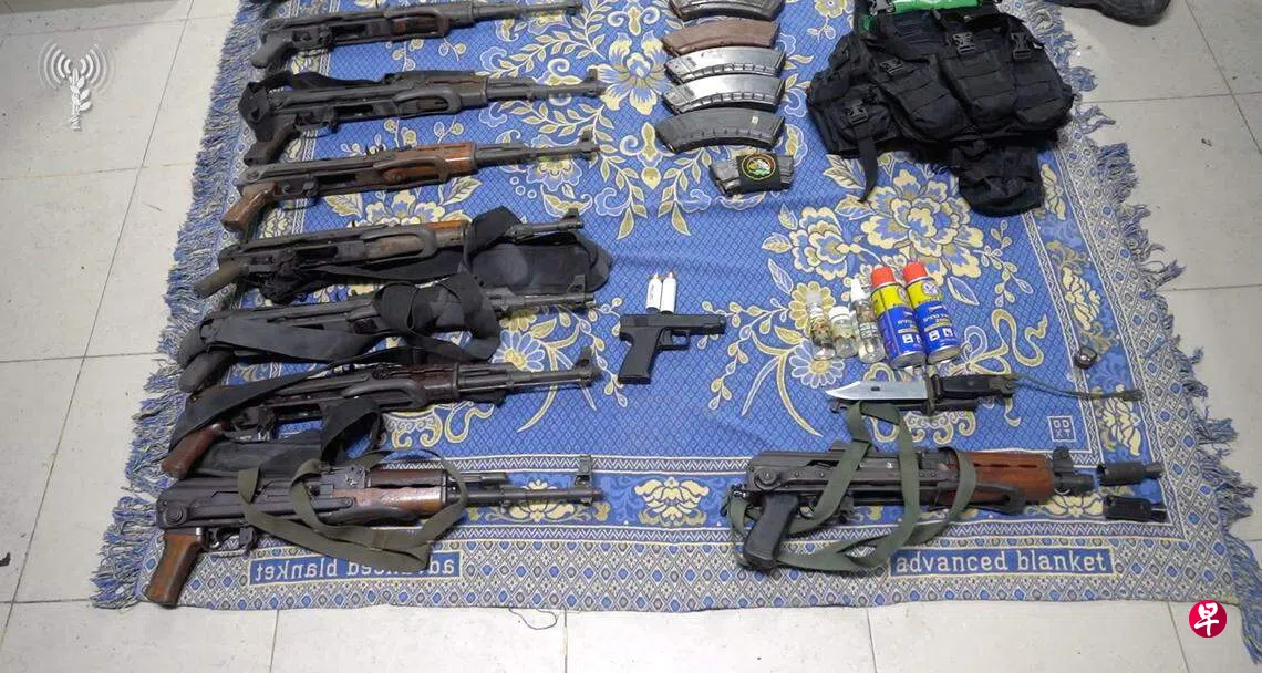 以色列军方发言人哈加里星期三(11月15日)说,在希法医院寻获武器与战斗装备,以军随后发布了一段视频,展示了在医院一栋建筑内存放的自动武器、手榴弹、弹药和防弹衣。